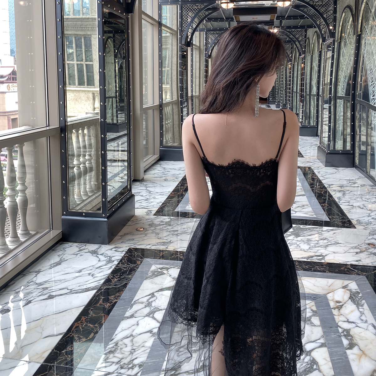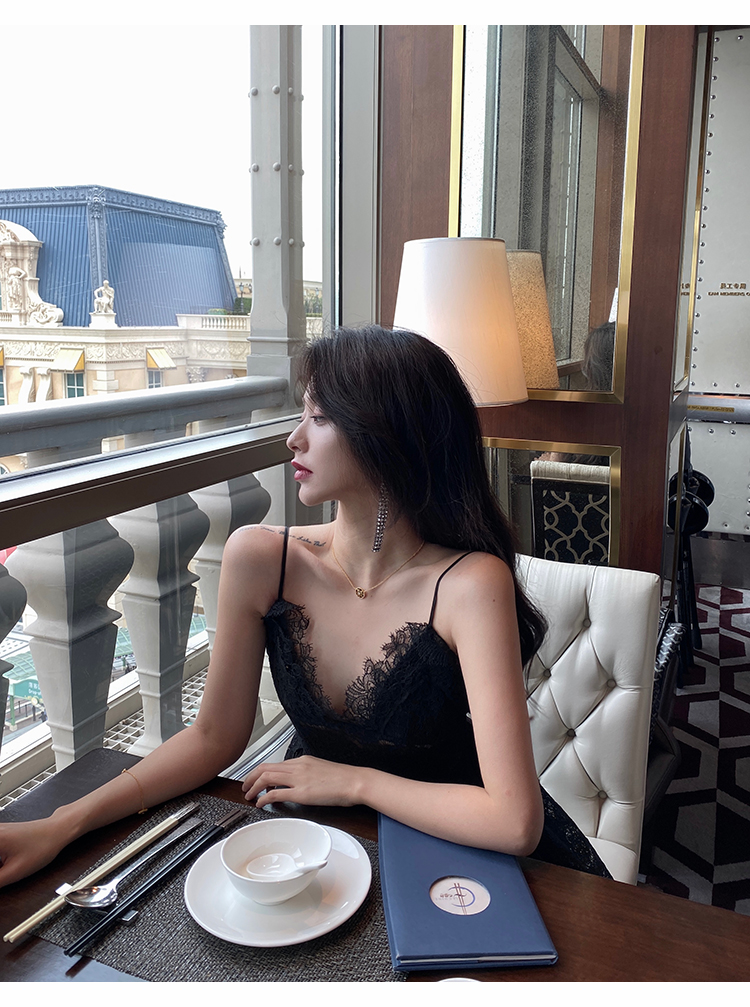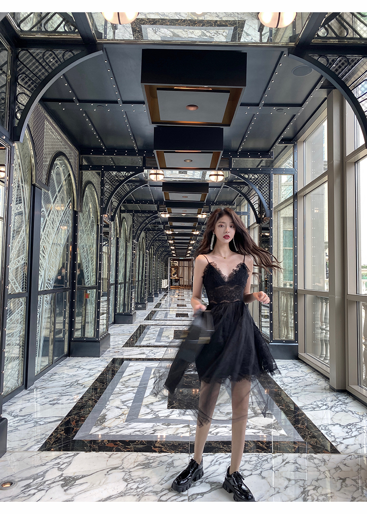 性感连衣裙早吊带蕾丝网纱拼接裙