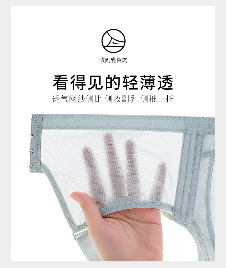 大胸顯小大碼內衣薄款無鋼圈舒適網紗文胸