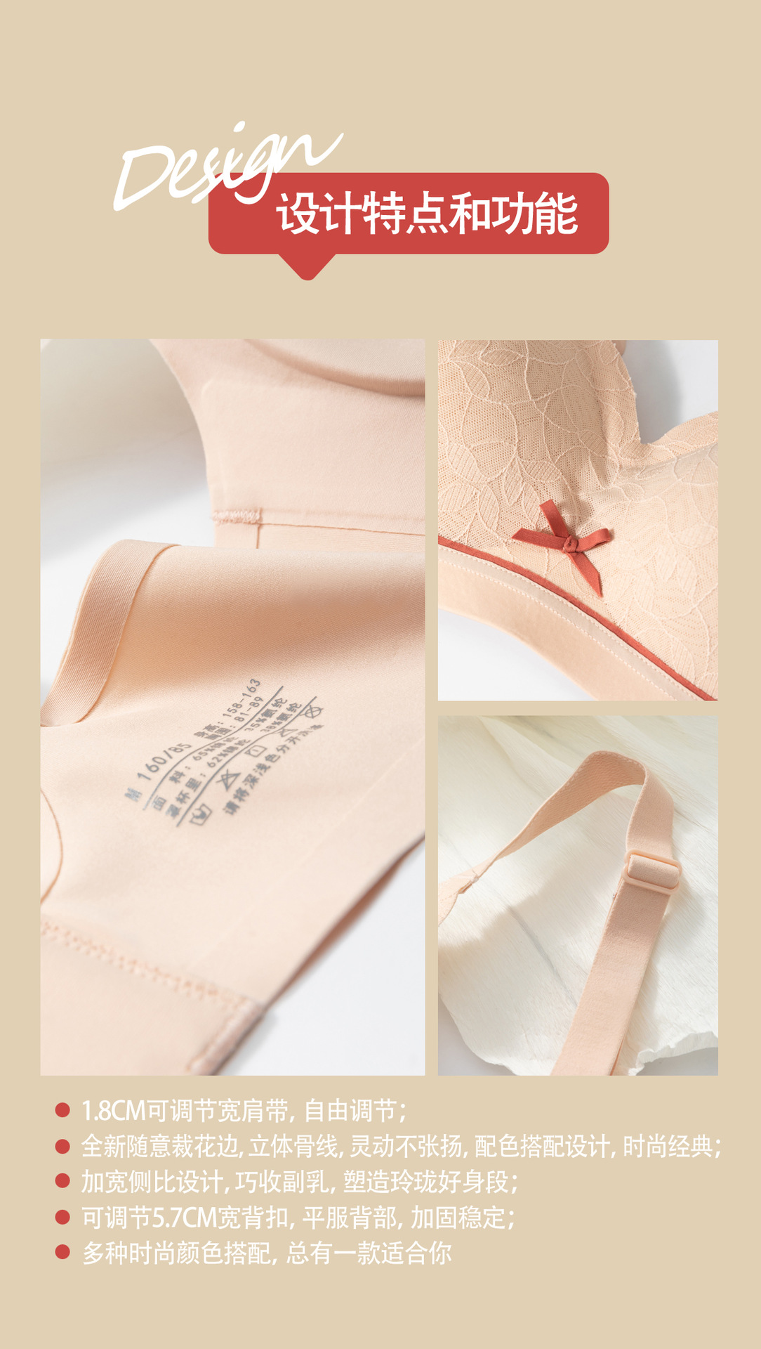 無鋼圈一片式無痕撞色蕾絲聚攏上托胸罩