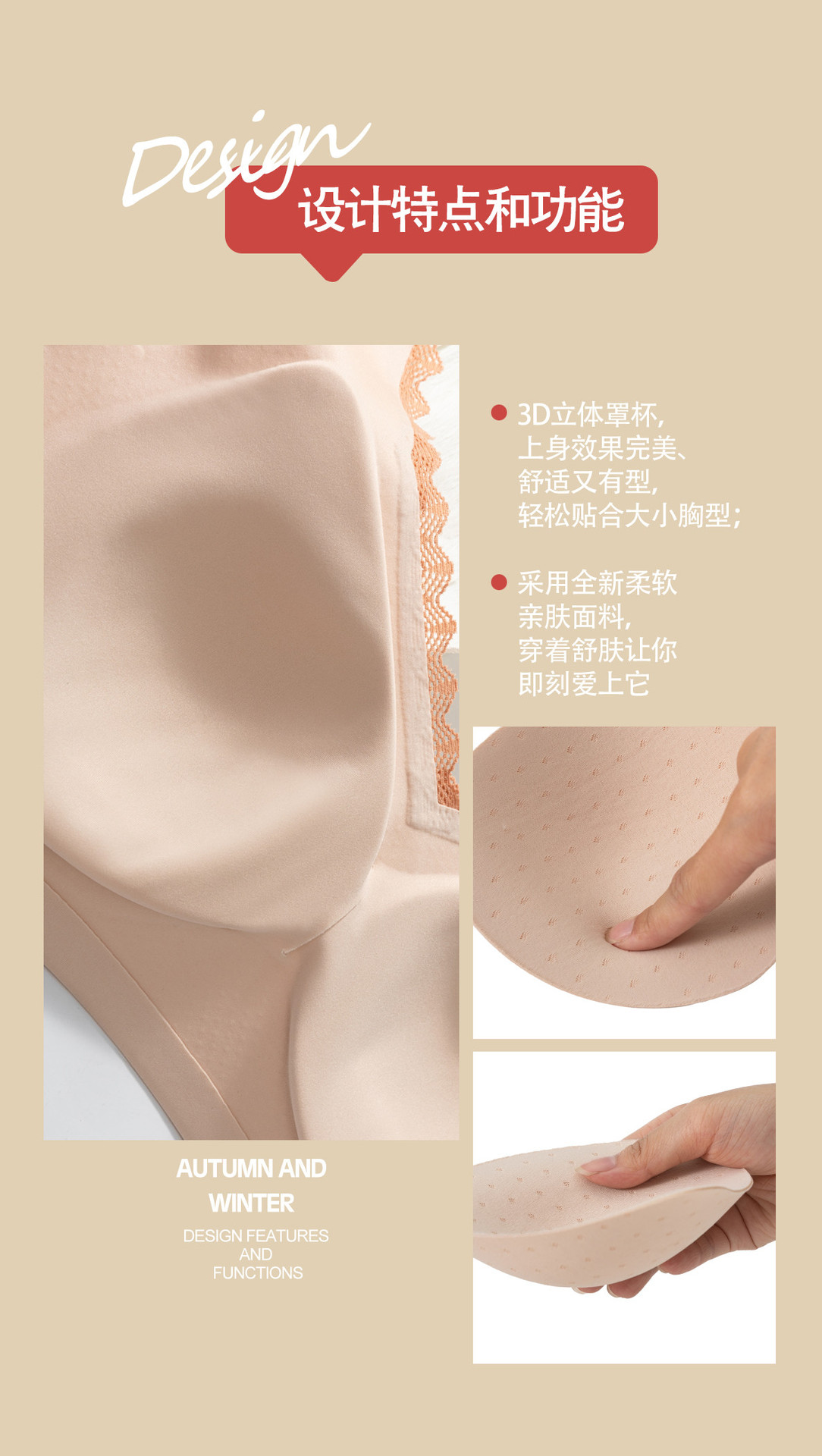 一片式舒適撞色蕾絲聚攏收副乳胸罩